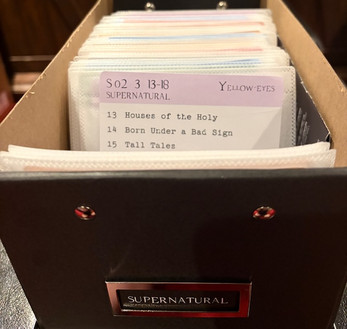 The box set of the complete series Supernatural (DVD or Blu-ray) is hostile to viewers — not just awkward to open but also badly indexed so it is hard to find a given episode … or even a given disc. I decanted the discs into sleeves and made these print-and-cut guides to the contents of each disc to make things easy to find.